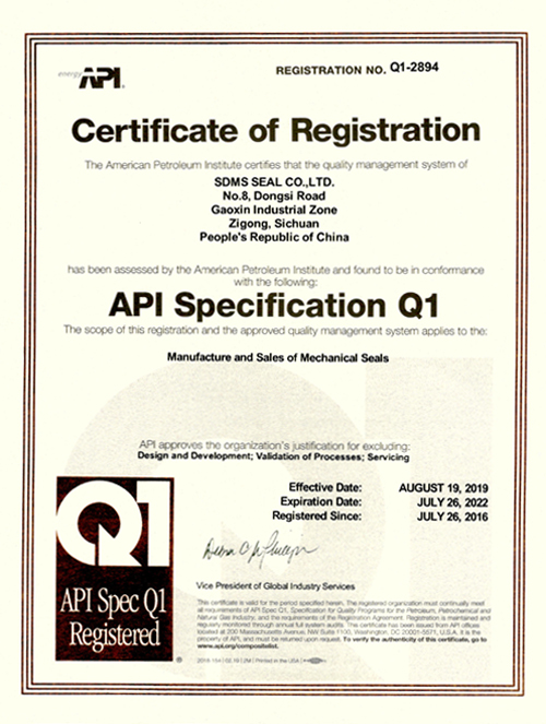 ???????2019年8月我公司再次通過(guò)審核并獲得API Q1質(zhì)量管理體系證書(shū)。???