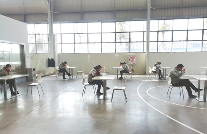 ?????? 員工工作餐時(shí)采取分批次、每人分散獨(dú)立的就餐原則。??