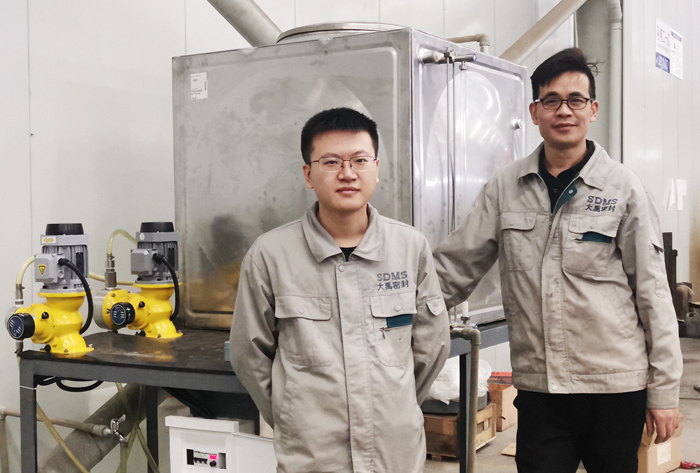 公司自制“機(jī)床用乳化液自動(dòng)配料裝置”試用