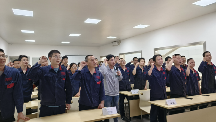 ? ? ? ?培訓(xùn)的最后,余超經(jīng)理帶著參訓(xùn)職工,一起開展安全生產(chǎn)集體宣誓。一聲聲鏗鏘有力的宣誓詞,響徹整個生產(chǎn)車間。這是對安全的重視,對生命保護(hù)的宣誓!安全生產(chǎn),是對自己負(fù)責(zé),對自己的家庭負(fù)責(zé),是對企業(yè)發(fā)展和平安社會負(fù)責(zé)。