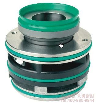 ? ? ? ?針對(duì)上述情況,四川大禹機(jī)械密封件制造有限公司改進(jìn)設(shè)計(jì)了更加適合中國(guó)國(guó)情的污水泵機(jī)械密封,其安裝尺寸完全按照美國(guó)ITT公司原廠機(jī)封尺寸設(shè)計(jì)。機(jī)封內(nèi)部結(jié)構(gòu)作了較大改進(jìn):首先改進(jìn)后的機(jī)封繼承了原機(jī)封的雙端面結(jié)構(gòu),保證了水泵和電機(jī)的正常工作,但是新機(jī)封在零件的結(jié)構(gòu)設(shè)計(jì)上增加了各零件的強(qiáng)度,使其更加適應(yīng)震動(dòng)大、維護(hù)保養(yǎng)差的國(guó)內(nèi)現(xiàn)場(chǎng)。其次新機(jī)封在選材上用高強(qiáng)度的不銹鋼替代了原機(jī)封的塑料、鋁合金,避免了塑料的老化;鋁合金強(qiáng)度差、容易碎的缺點(diǎn)。?